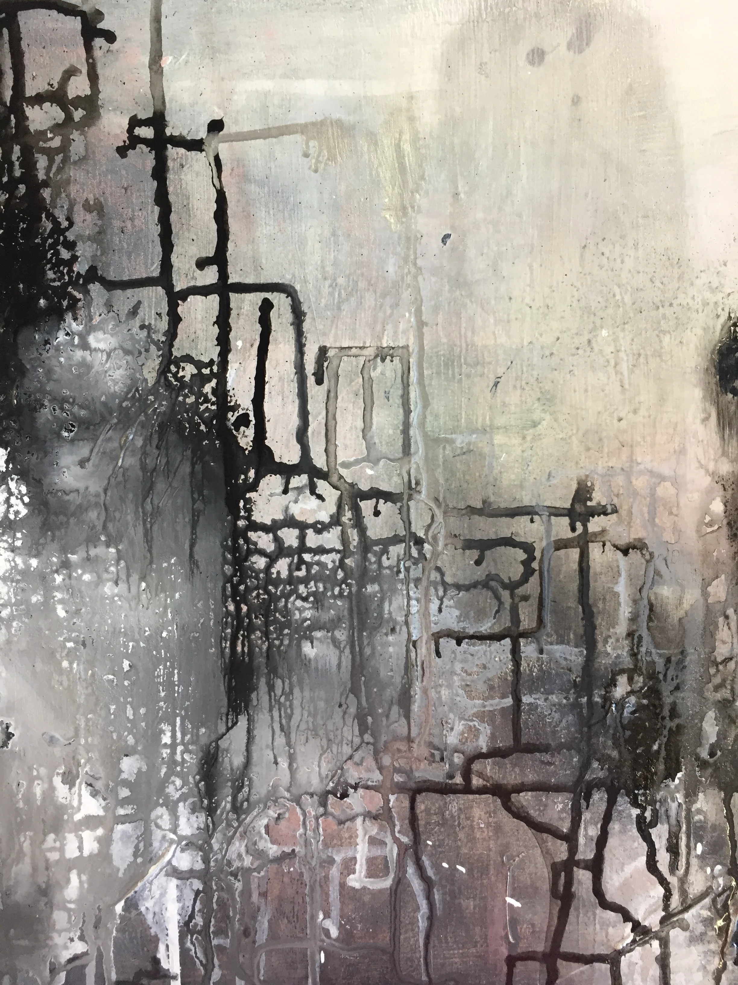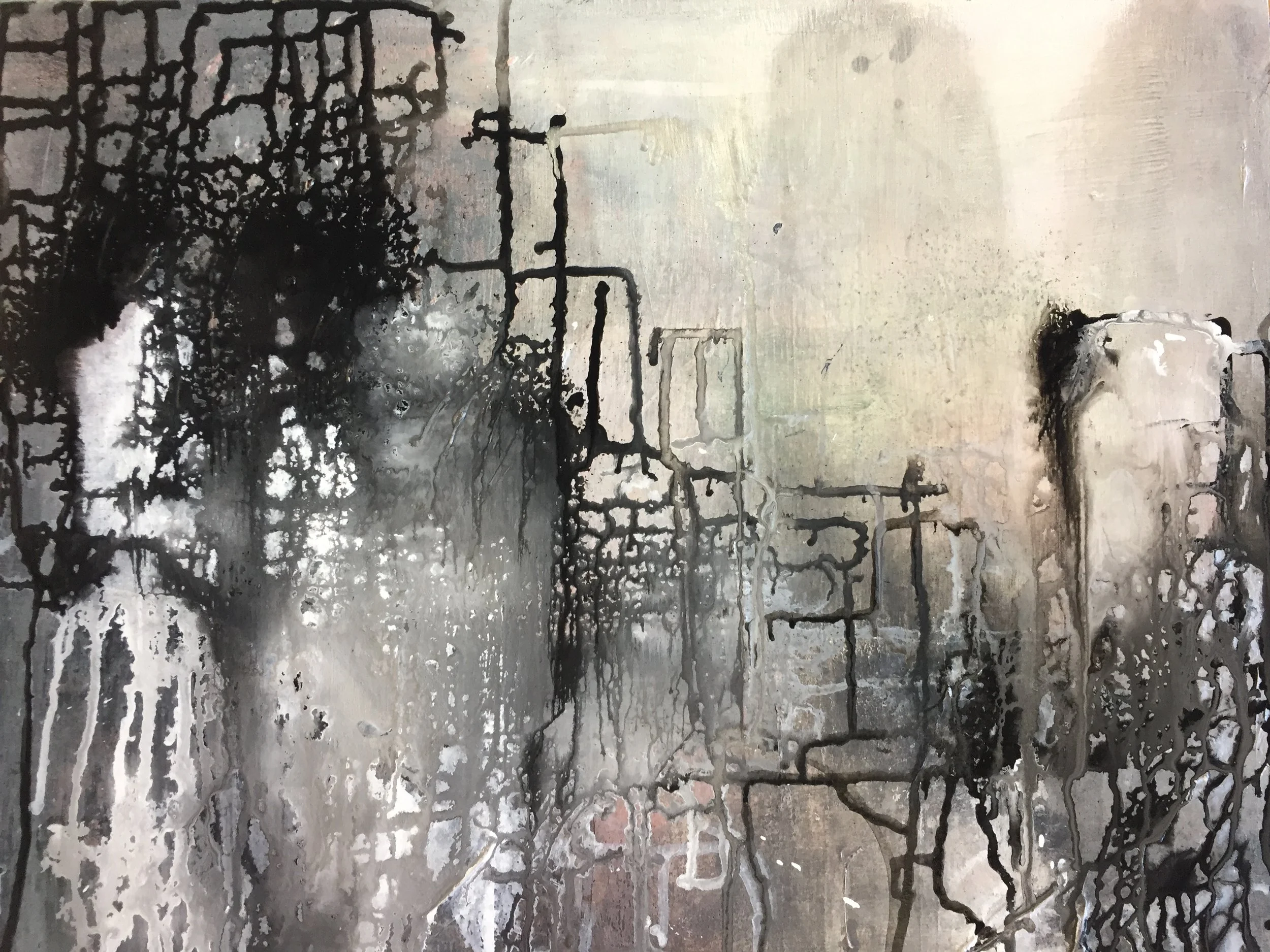 Fluid abstract psychological landscapes. Mixed media paintings on panels include sumi ink, acrylic paint, interior house paint, watercolor, gouache and graphite. Sizes are mostly 16”x20”, please inquire for more details.