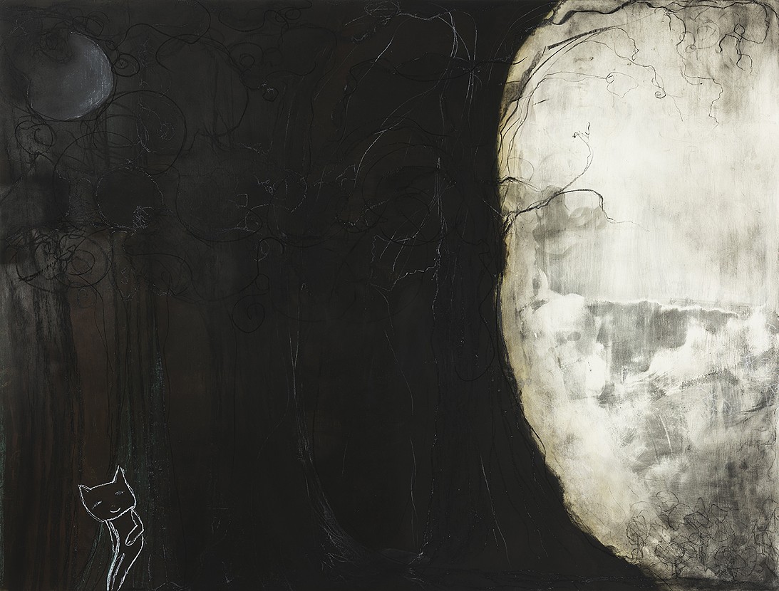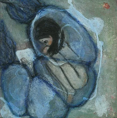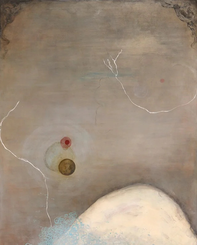 Sample of earlier paintings exploring themes of identity, transition, ecosystems, and the future. The figurative series, Eyes Closed, features protagonists trying to make sense of a strange place called Earth.